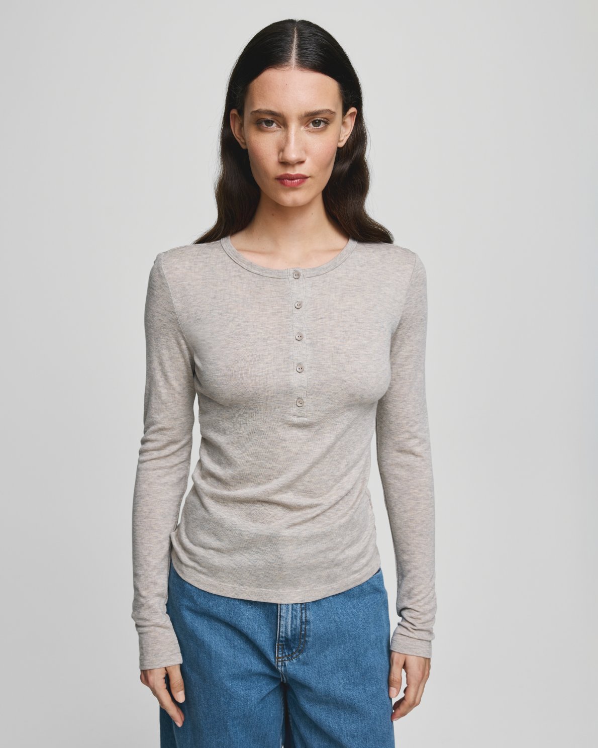 MSCHMelisse Top ist ein langärmeliges Jersey-Top mit Rundhalsausschnitt und Knopfverschluss vorne. Die schmale Passform und das klare Design verleihen einen zeitlosen, entspannten Look – perfekt als unverzichtbares Basic oder zum Layern.