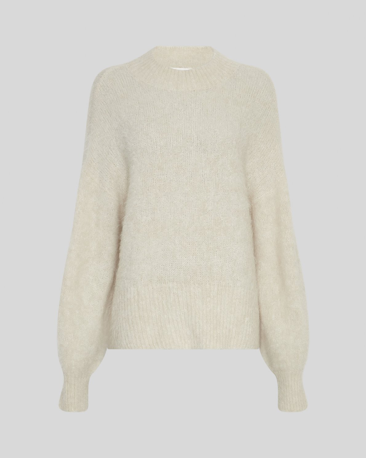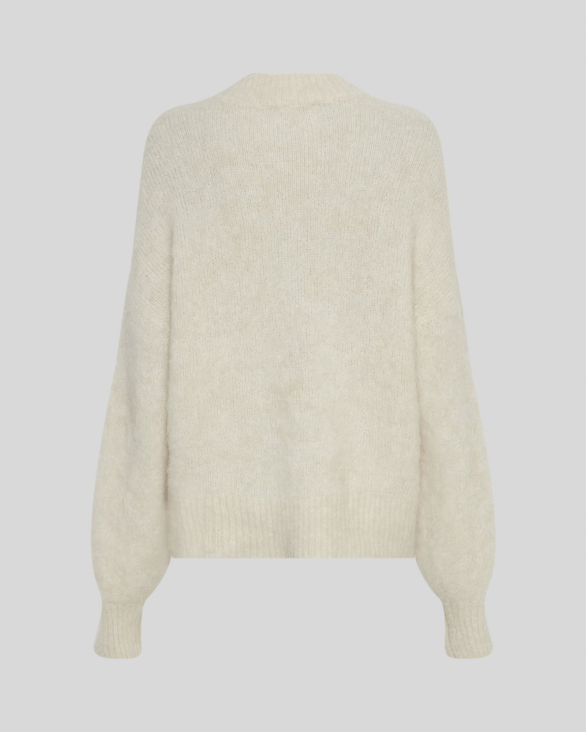 Dieser Pullover hat eine lockere Passform und ist hinten etwas länger geschnitten. Die Ärmel sind lang und mit einem gerippten Saum versehen. Die Alpaka-Wolle ist langfaserig.