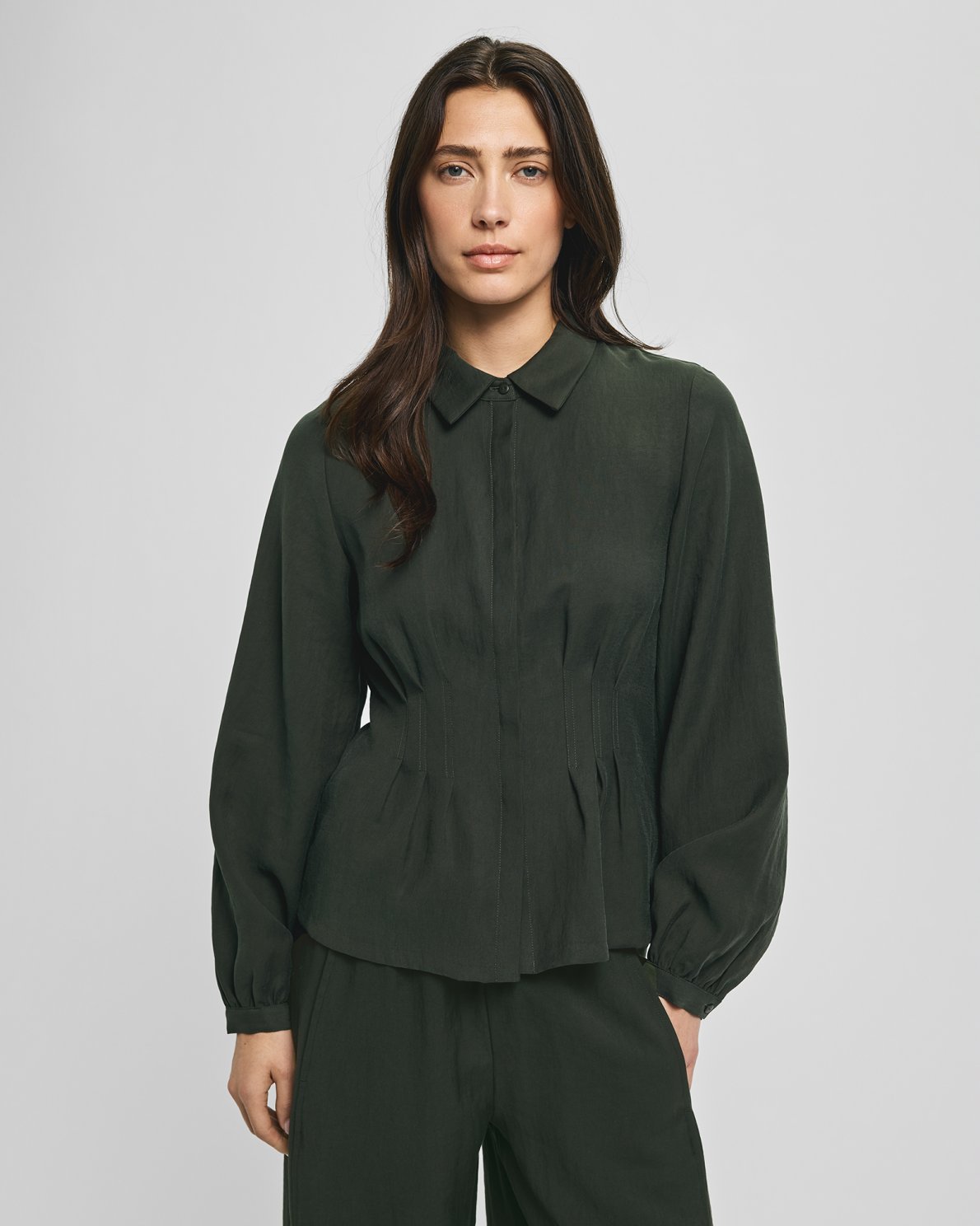 MSCHManny shirt is a slightly form fitting shirt, with pleat details at the waist. The shirt features long sleeves and a classic collar.