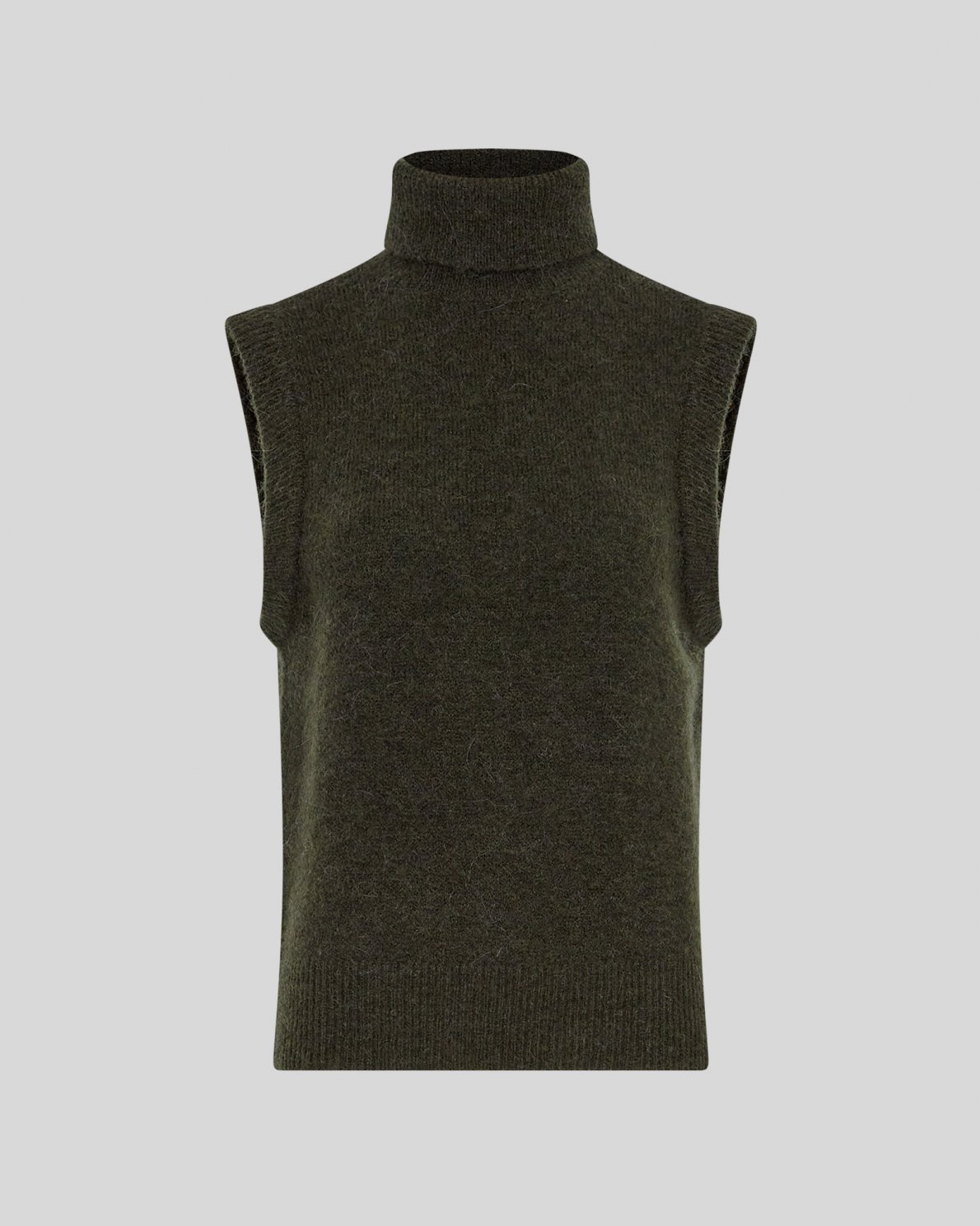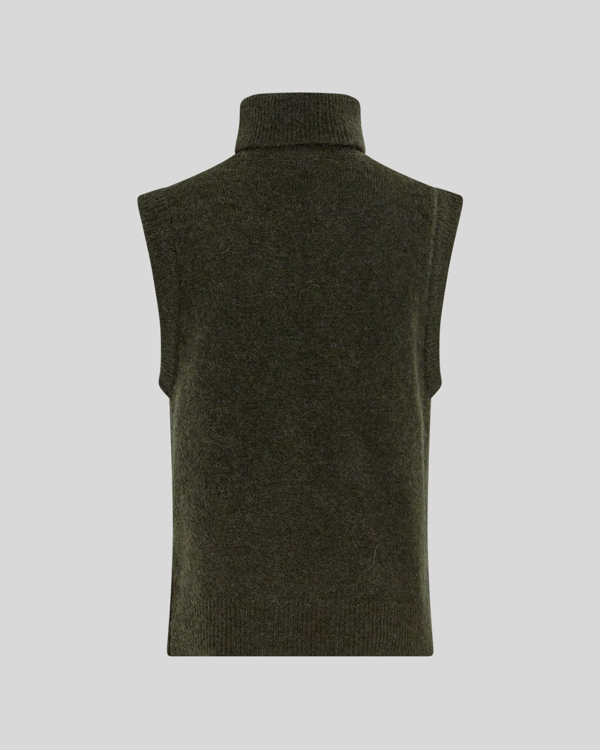 Gestrickte Weste mit Rollkragen. Mit weicher Struktur, ärmellosem Design und einem geraden Saum. Regulär geschnitten.
