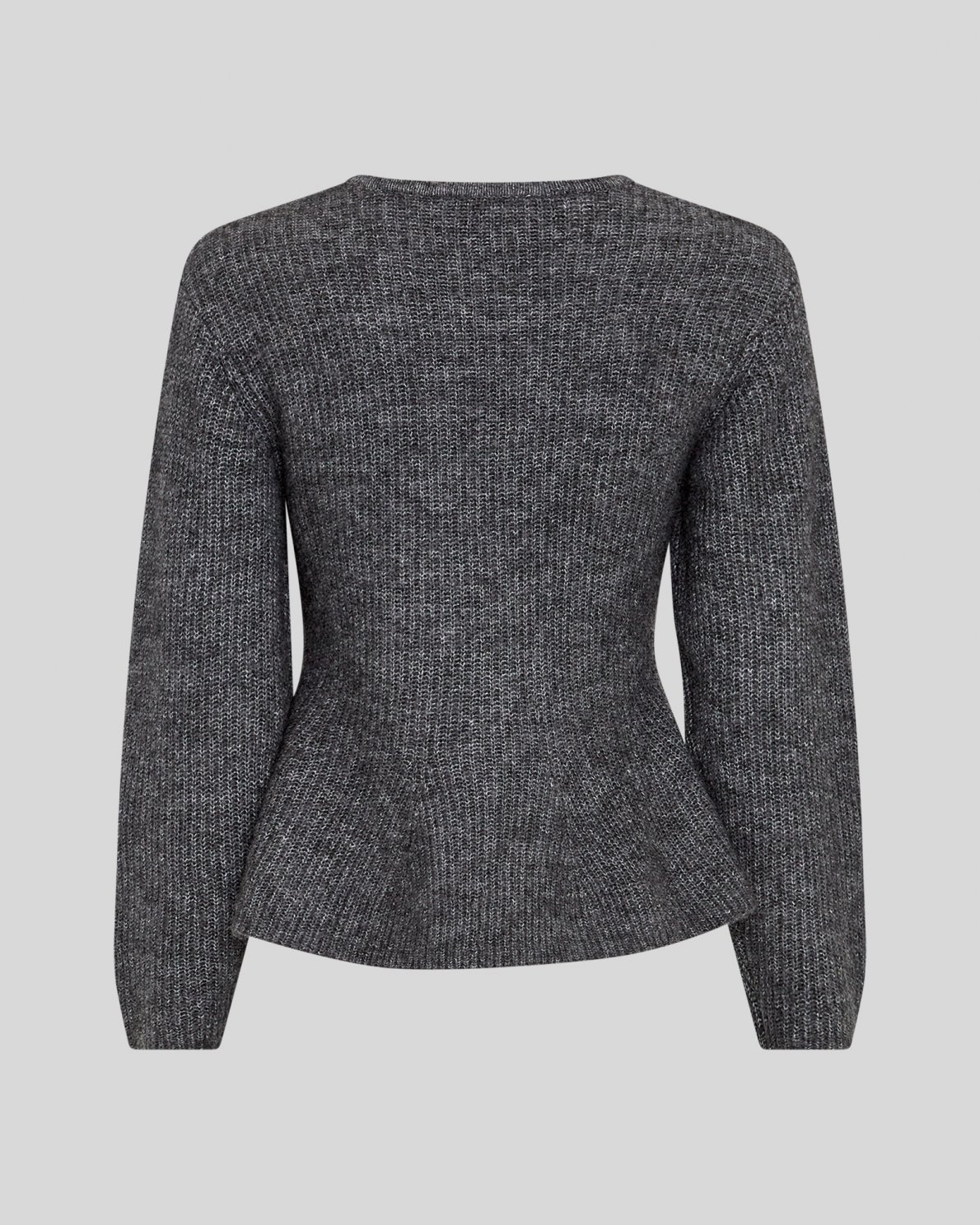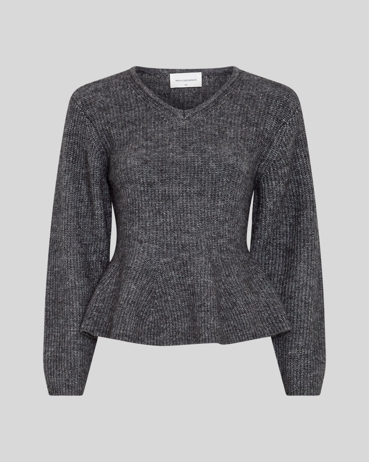 Gestrickter Pullover mit V-Ausschnitt. Mit Rippstruktur, langen Ärmeln und einem leicht voluminösen Peplum-Saum. Regulär geschnitten.