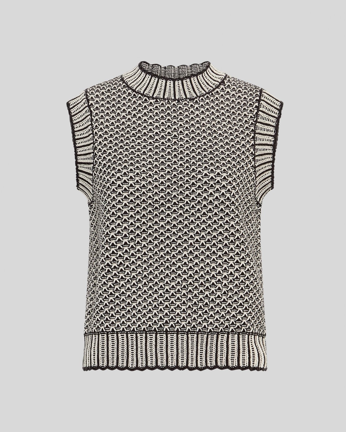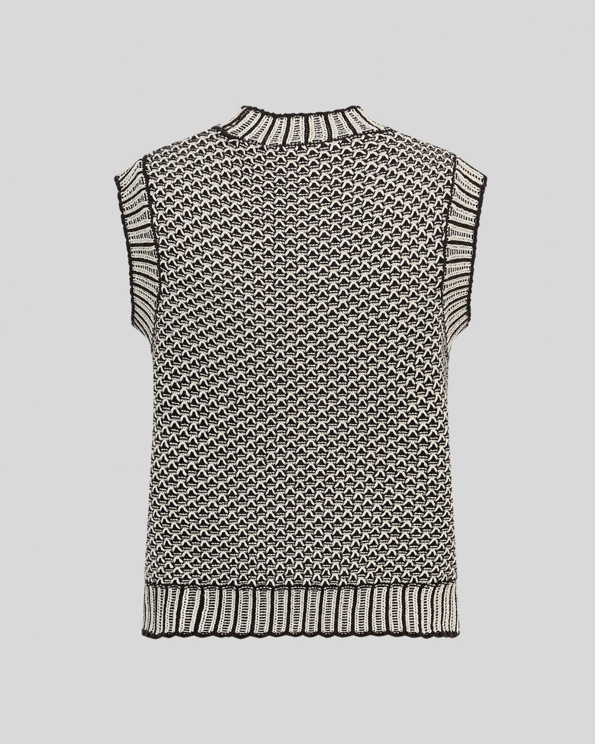 Gestrickte Weste mit zweifarbigem Muster. Mit geripptem Rundhalsausschnitt, geripptem Saum und ärmelloser Silhouette. Regulär geschnitten.