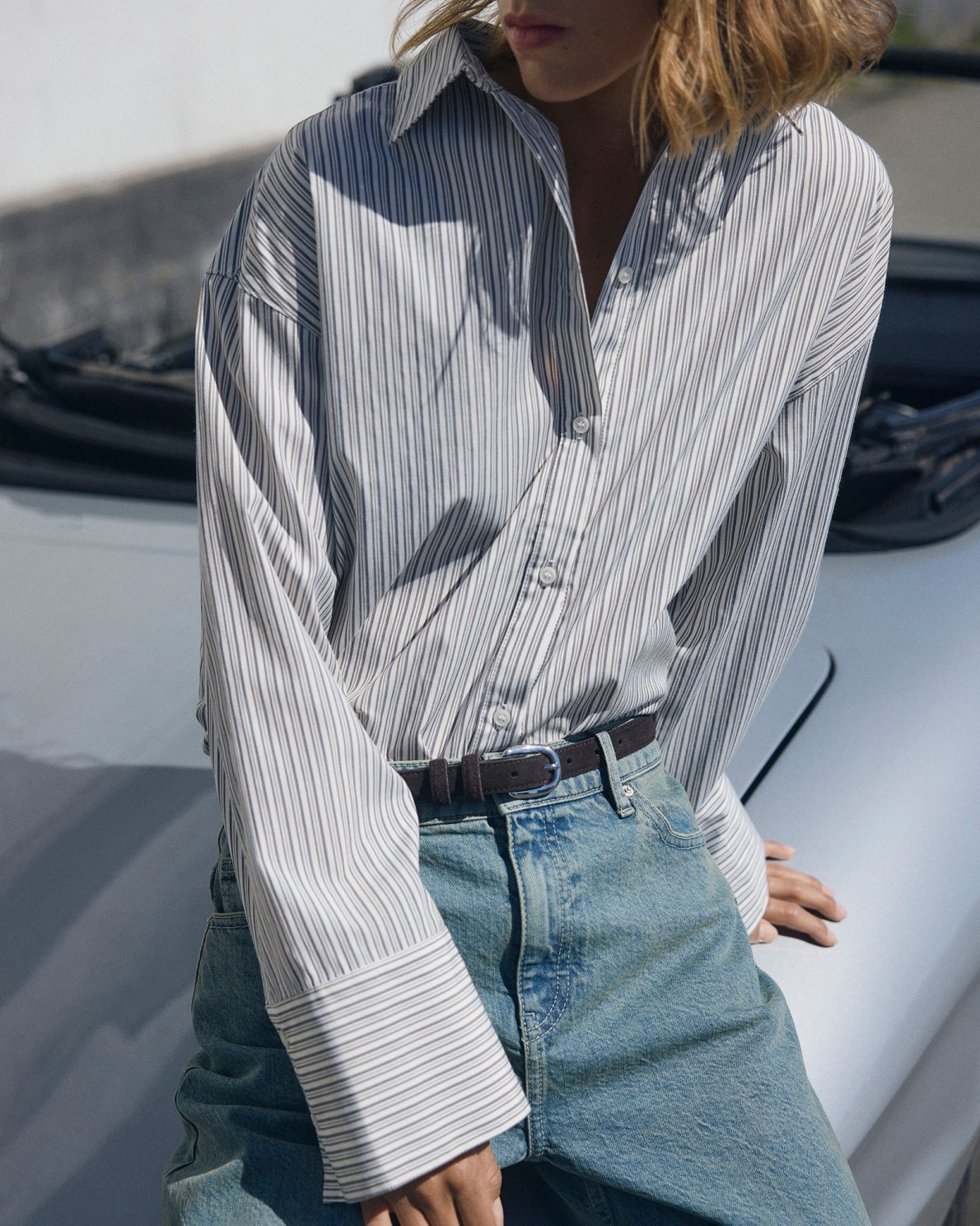 Gestreifte Hemdbluse mit Knopfleiste. Klassischer Hemdkragen und Langarm mit Manschetten. Abgerundeter Saum.