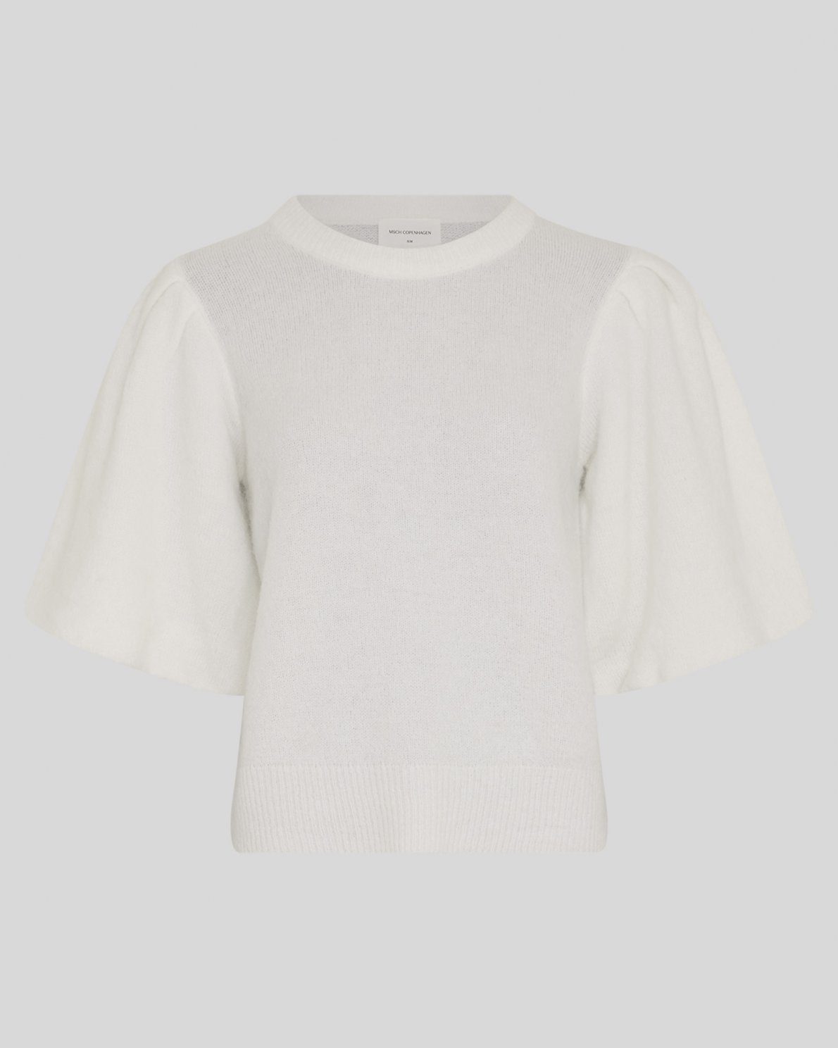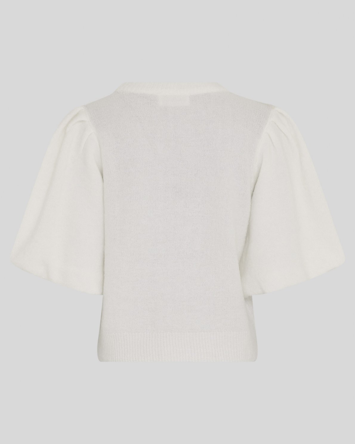 Gestrickter Pullover mit Rundhalsausschnitt und kurzen Puffärmeln. Die weiche, leichte Strickqualität und die Rippabschlüsse sorgen für einen femininen und entspannten Look.