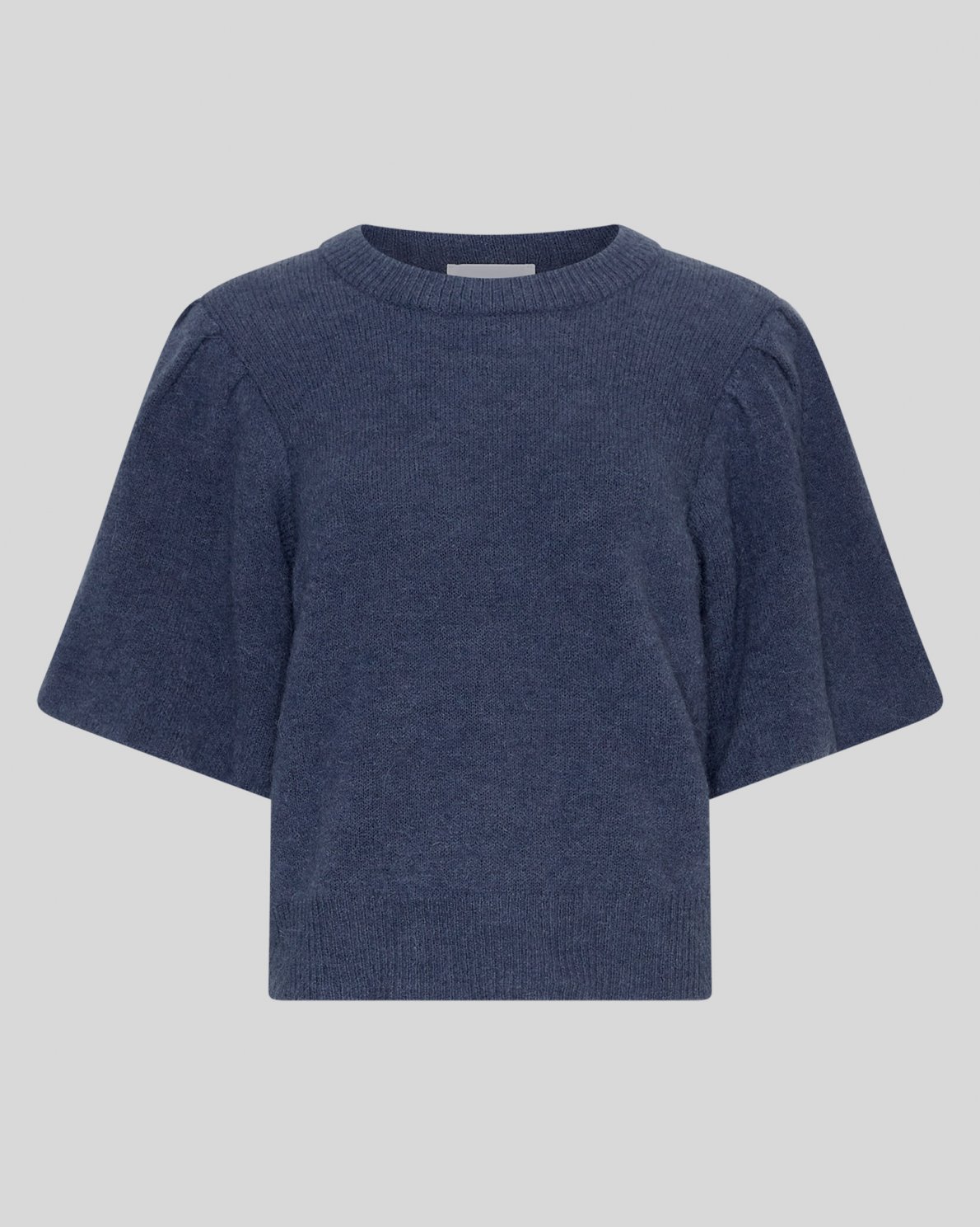 Gestrickter Pullover mit Rundhalsausschnitt und kurzen Puffärmeln. Die weiche, leichte Strickqualität und die Rippabschlüsse sorgen für einen femininen und entspannten Look.