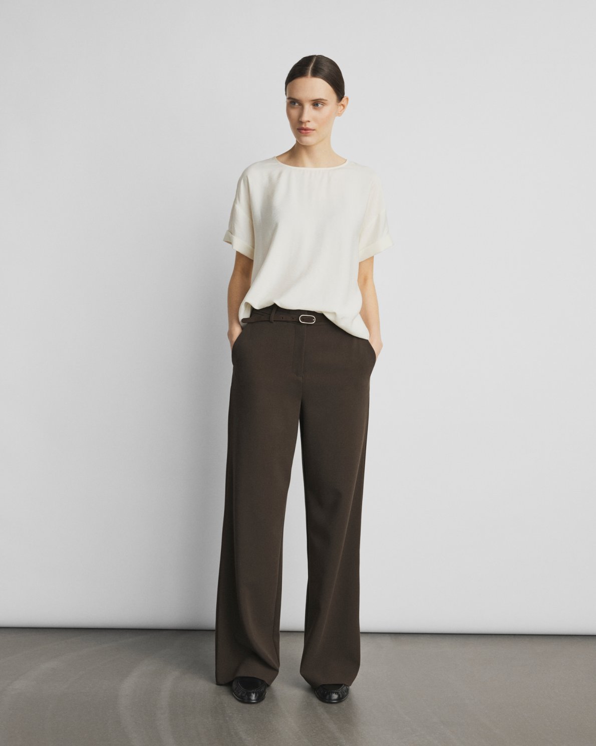Kurzärmeliges Top mit Rundhalsausschnitt und entspannter Silhouette. Mit überschnittenen Schultern und umgeschlagenen Ärmeln. Klare Verarbeitung mit ruhigem Ausdruck.