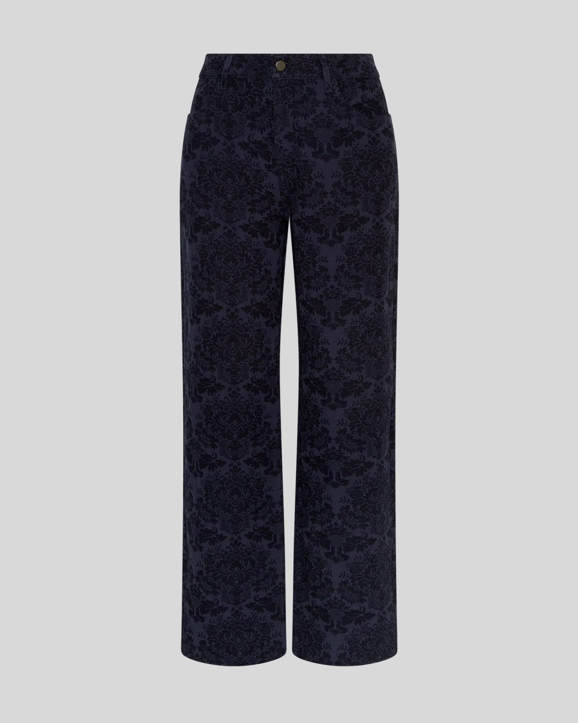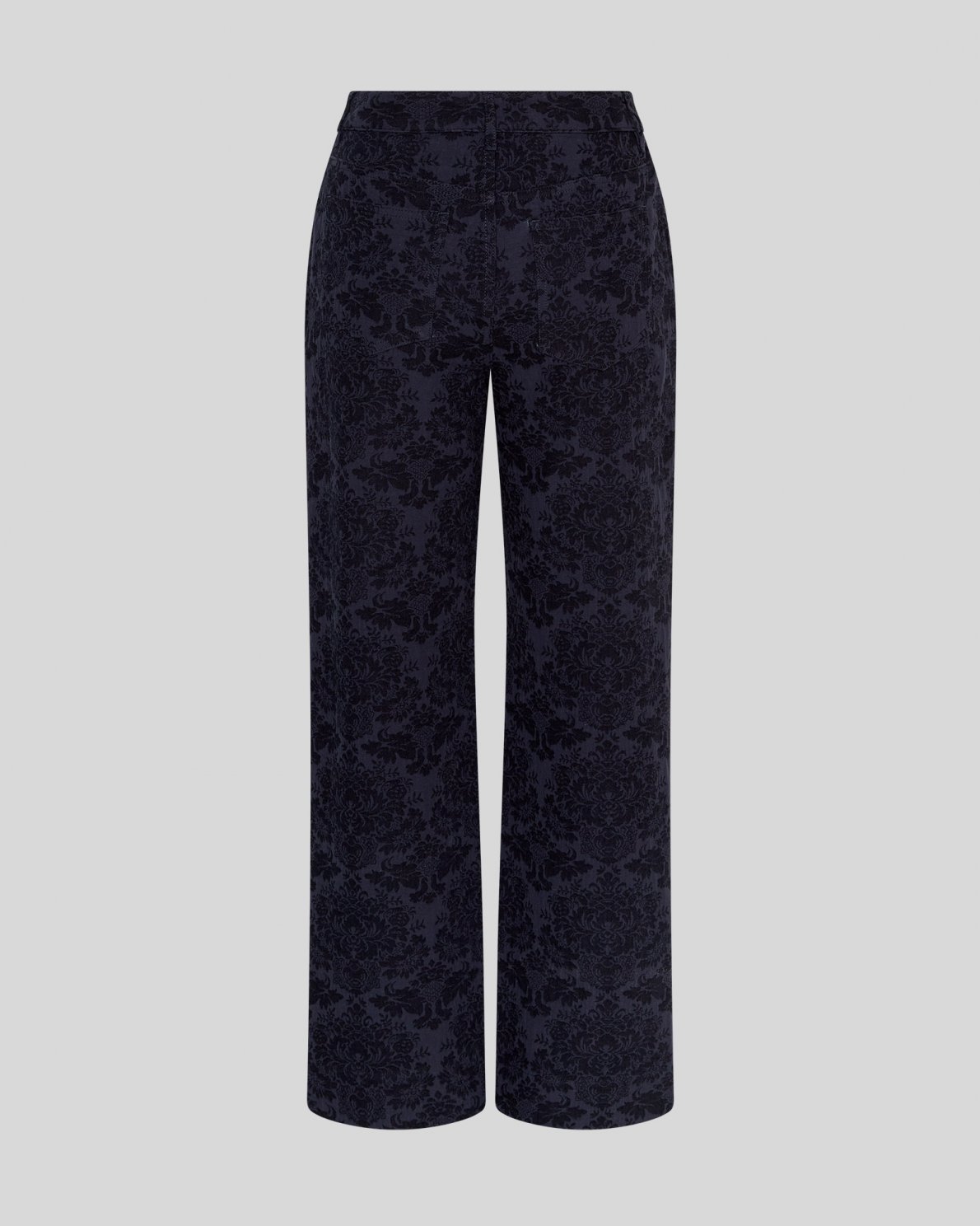 Hose aus gewebtem Material mit strukturierter, gemusterter Oberfläche. Gerade Beine und klassischer Verschluss. Gesäßtaschen.