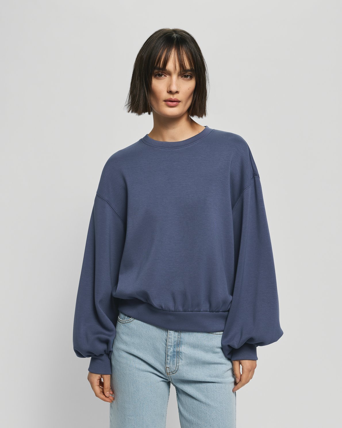 Sweatshirt mit Rundhalsausschnitt und Langarm. Mit überschnittenen Schultern und elastischem Saum.
