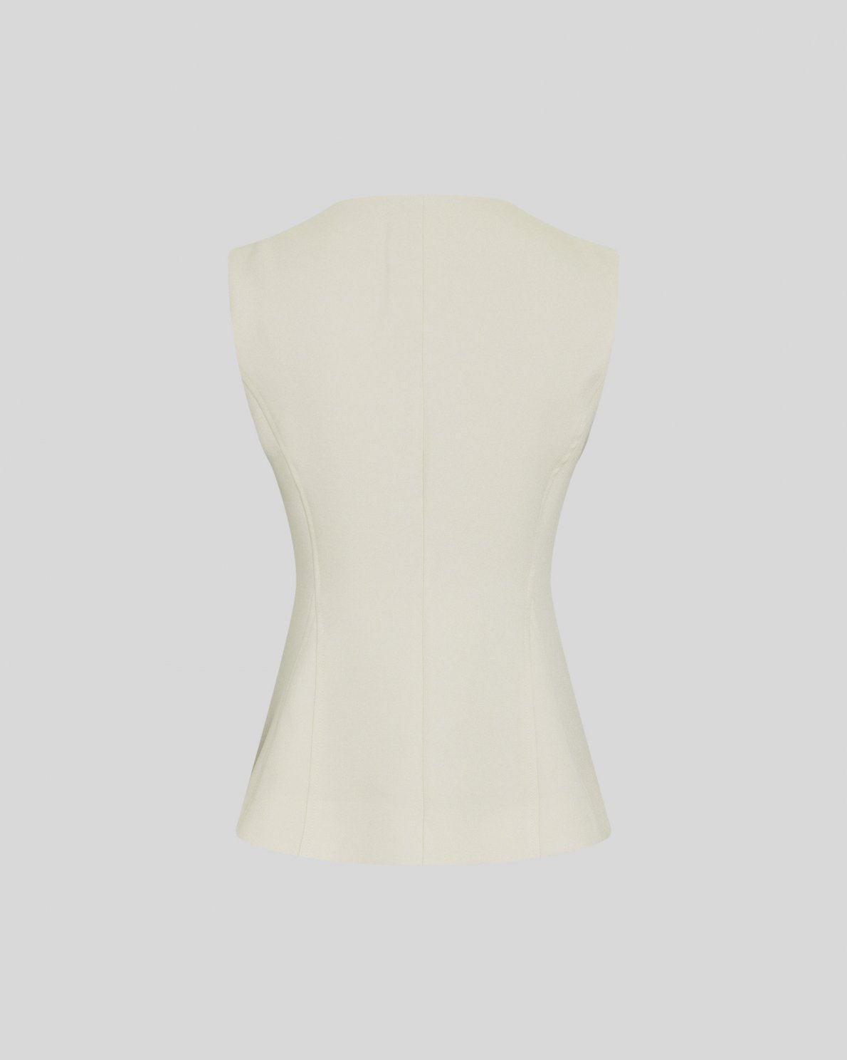 Figurbetonte Weste mit schmaler Passform. V-Ausschnitt und Knopfleiste vorne. Formgebende Nähte.