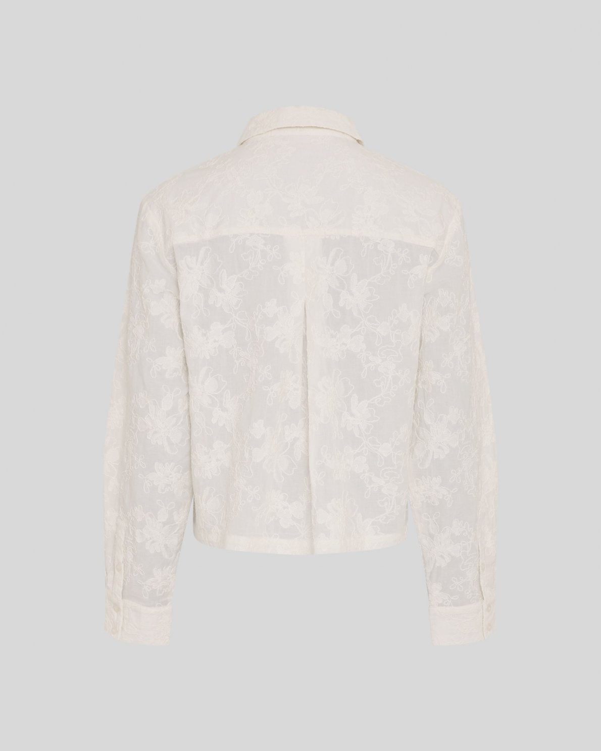 Gewebtes Hemd mit gestickter Blumenstruktur. Mit klassischem Kragen, durchgehender Knopfleiste und Brusttasche. Lange Ärmel mit Manschetten. Normale Passform.