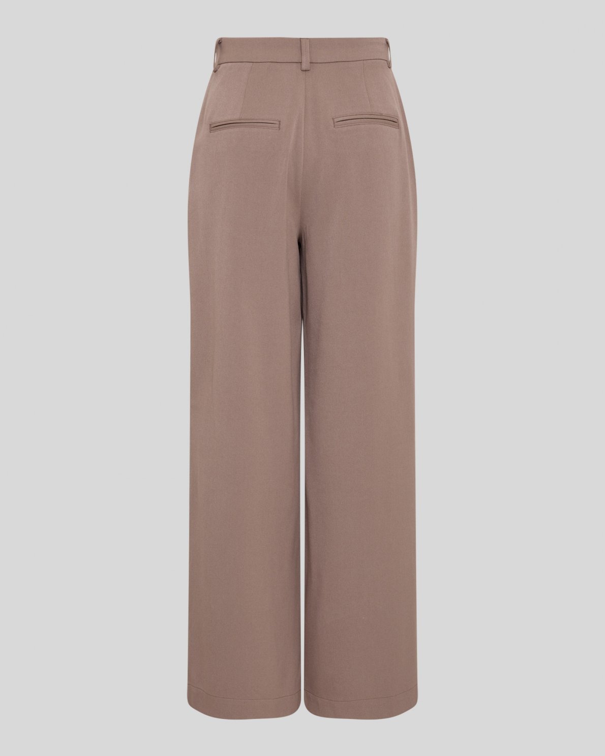 Hoch geschnittene Anzughose mit weitem Bein. Mit festem Bund, Gürtelschlaufen, Haken- und Reißverschluss sowie Bügelfalten auf der Vorderseite. Ausgestattet mit Seitentaschen und paspelierten Gesäßtaschen. Gefertigt aus einem weichen, elastischen Material.