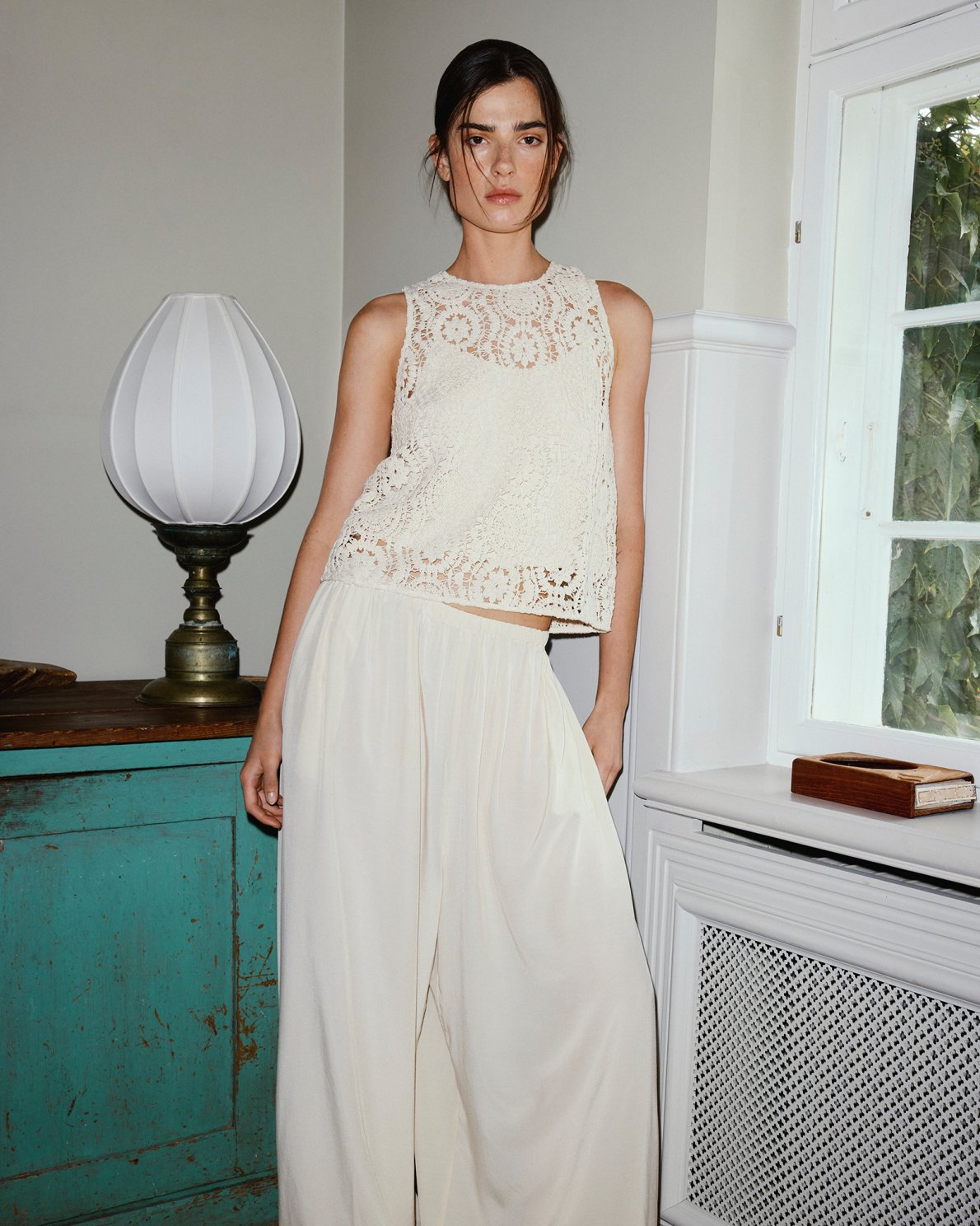 Weit geschnittene Hose in leichter Webqualität. Mit elastischem Bund und weiter Silhouette. Knöchellange Beine mit elastischem Abschluss. Weiche, fließende Materialstruktur.
