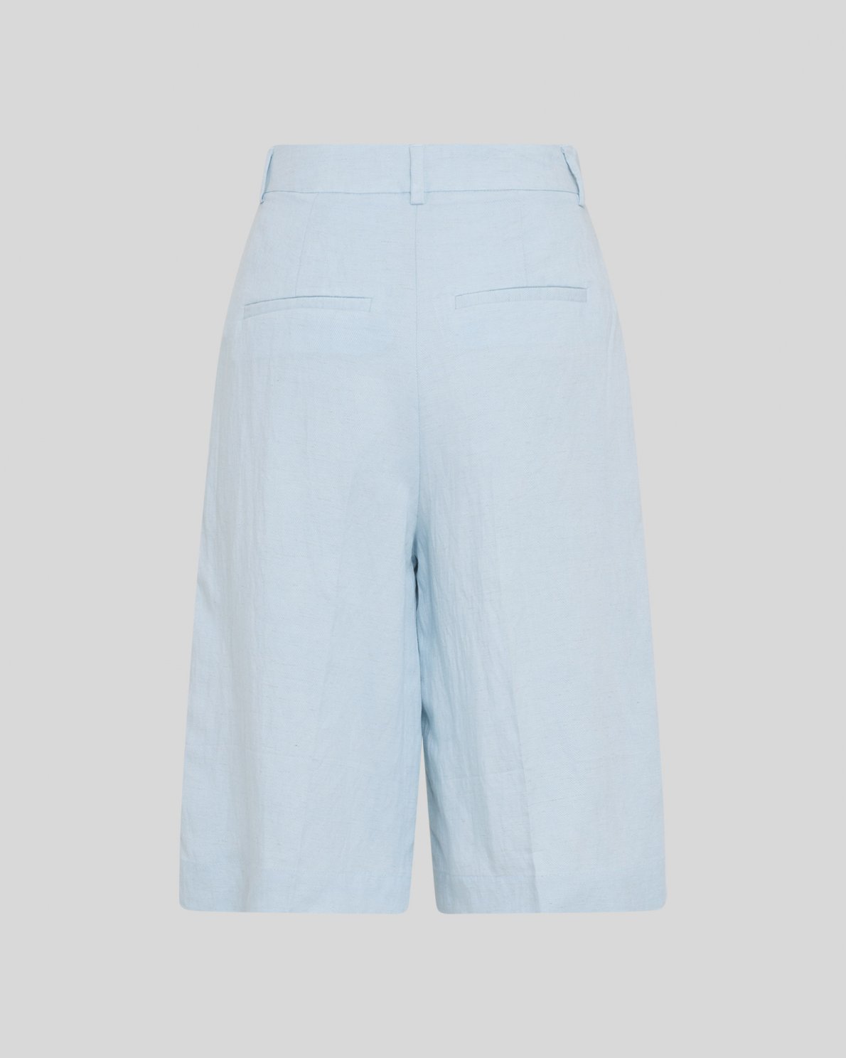Hochtaillierte knielange Shorts in leichter Webqualität. Mit festem Bund und Gürtelschlaufen. Verdeckter Reißverschluss mit Hakenverschluss. Falten vorne sorgen für Volumen. Schräge Vordertaschen und paspelierte Gesäßtaschen. Lockeres Bein mit knielanger Länge.