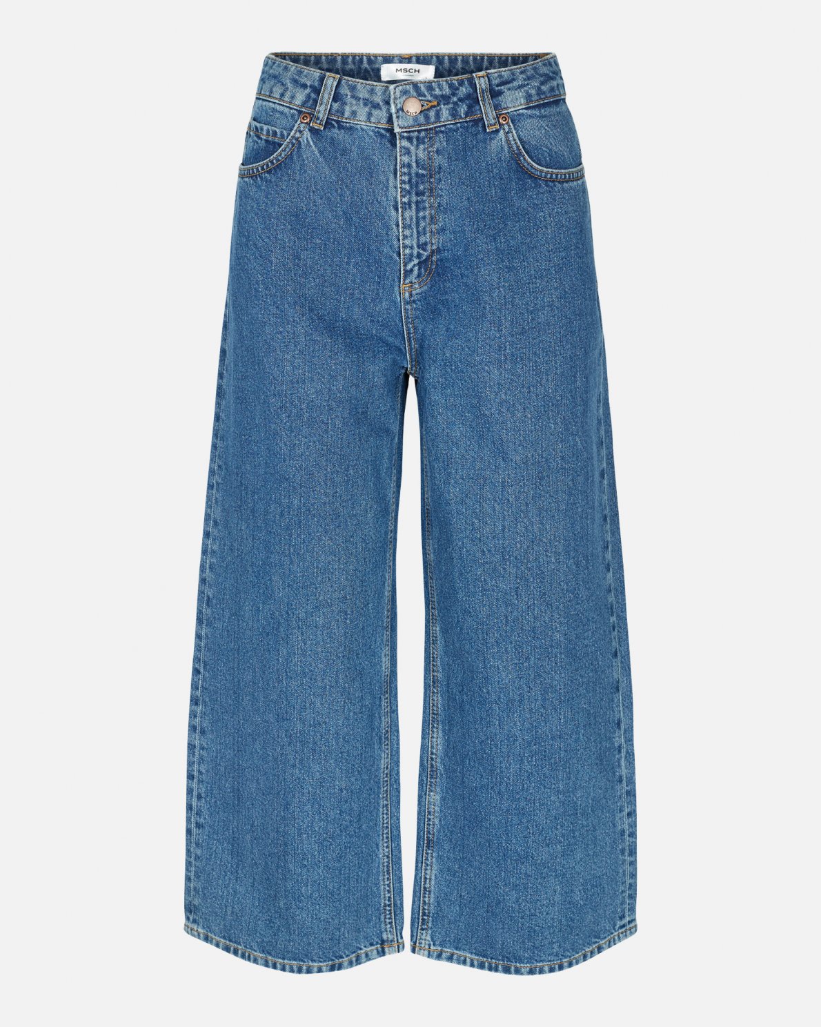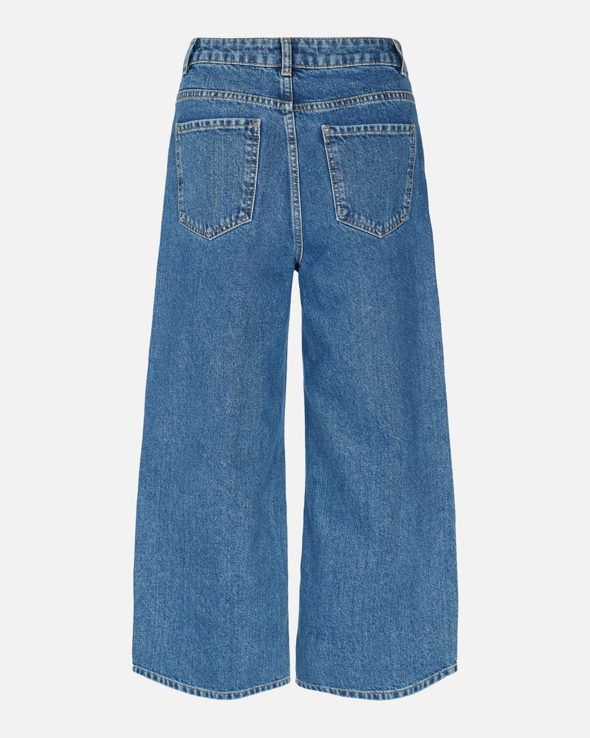 High waisted denim jeans with wide legs and 2 pockets in front and back