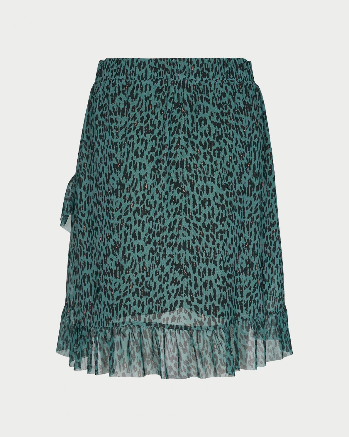 Knee long AOP skirt with elastic waist and frill effect