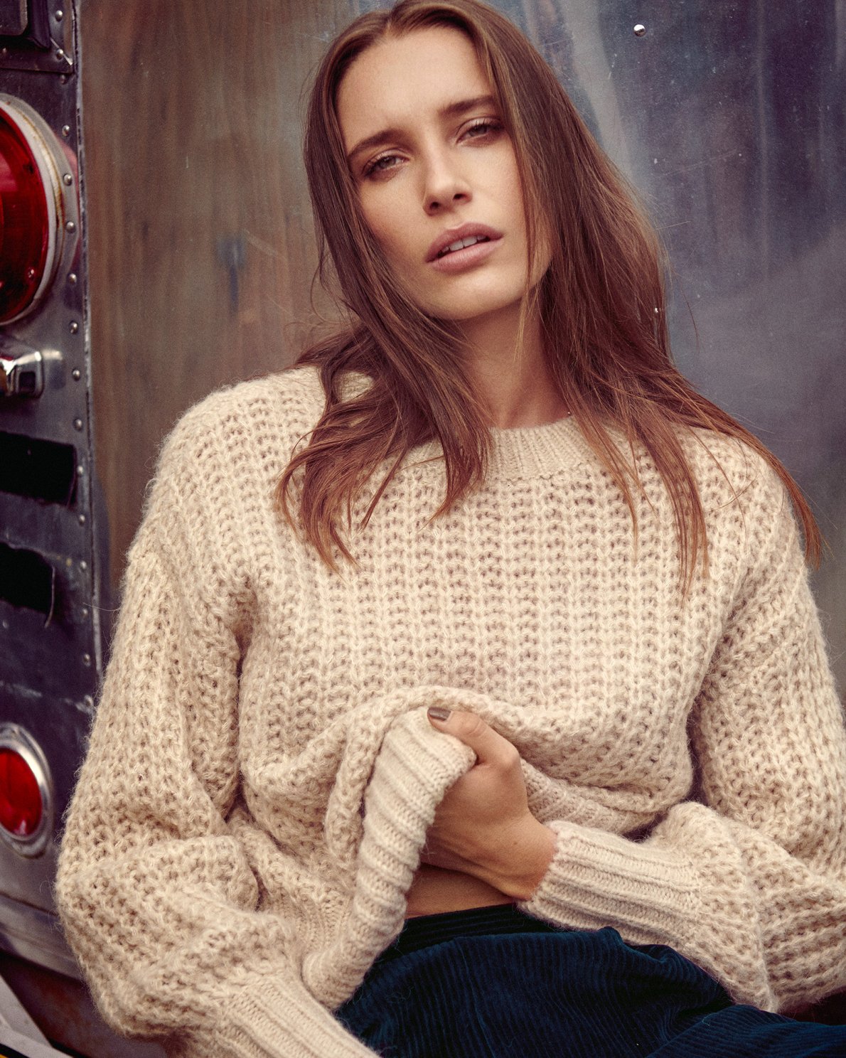 Chunky knitted pullover. Long sleeves, with high rib at the ends