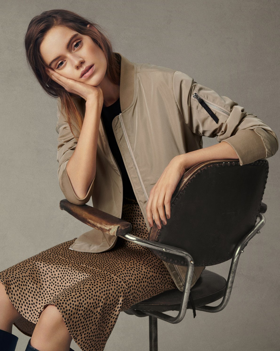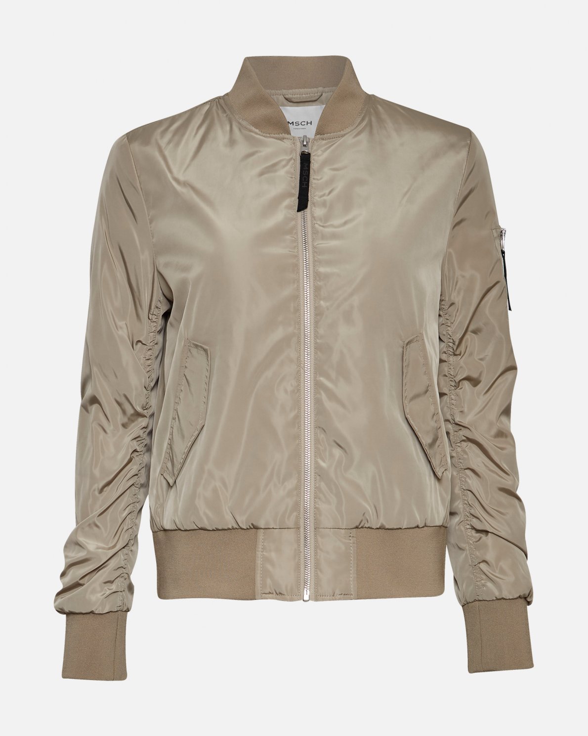 Bomber jacket with elastic waist and pocket detail on the left sleeve